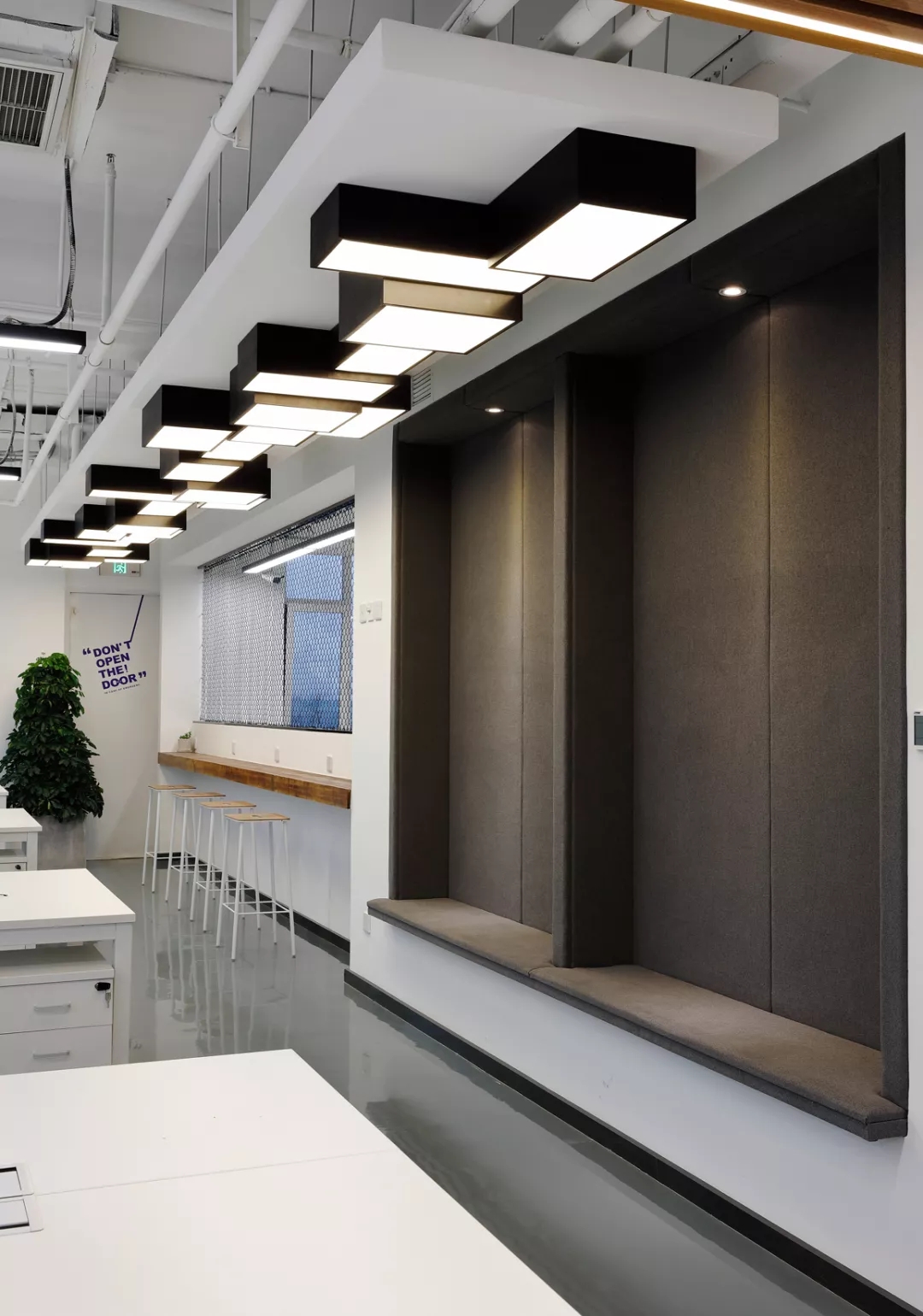 最新完成的整層辦公區(qū)延續(xù)了主體風(fēng)格,少了花俏的點(diǎn)綴,更多地使用色彩碰撞來(lái)提振精神,比如亮橙色開(kāi)放會(huì)議間與品牌VI的臟灰色搭配。也首次嘗試了全白色調(diào)的通透會(huì)議室,算是對(duì)極致風(fēng)格的小探索。