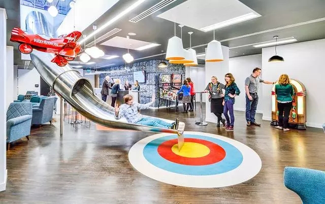 在關(guān)于辦公室的各種新聞里,近年比較讓人喜聞樂見的,莫過于各個知名公司新更換的總部大樓。連通樓上樓下的滑梯、可以隨時享用下午茶和簡餐的吧臺、藝術(shù)廊般的會議室等等,這些本來不屬于辦公室的生活場景,作為一種創(chuàng)意設(shè)計開始頻繁出現(xiàn)于南寧辦公室裝修中。