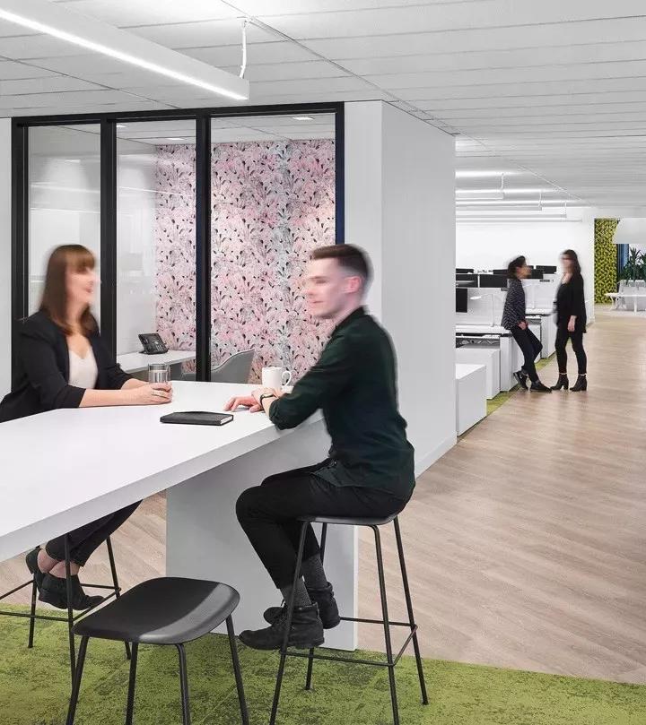 考慮到客戶以協(xié)作為基礎的工作屬性,設計團隊規(guī)劃了一系列正式和非正式的會議空間,為各種工作行為提供了靈活便利性。