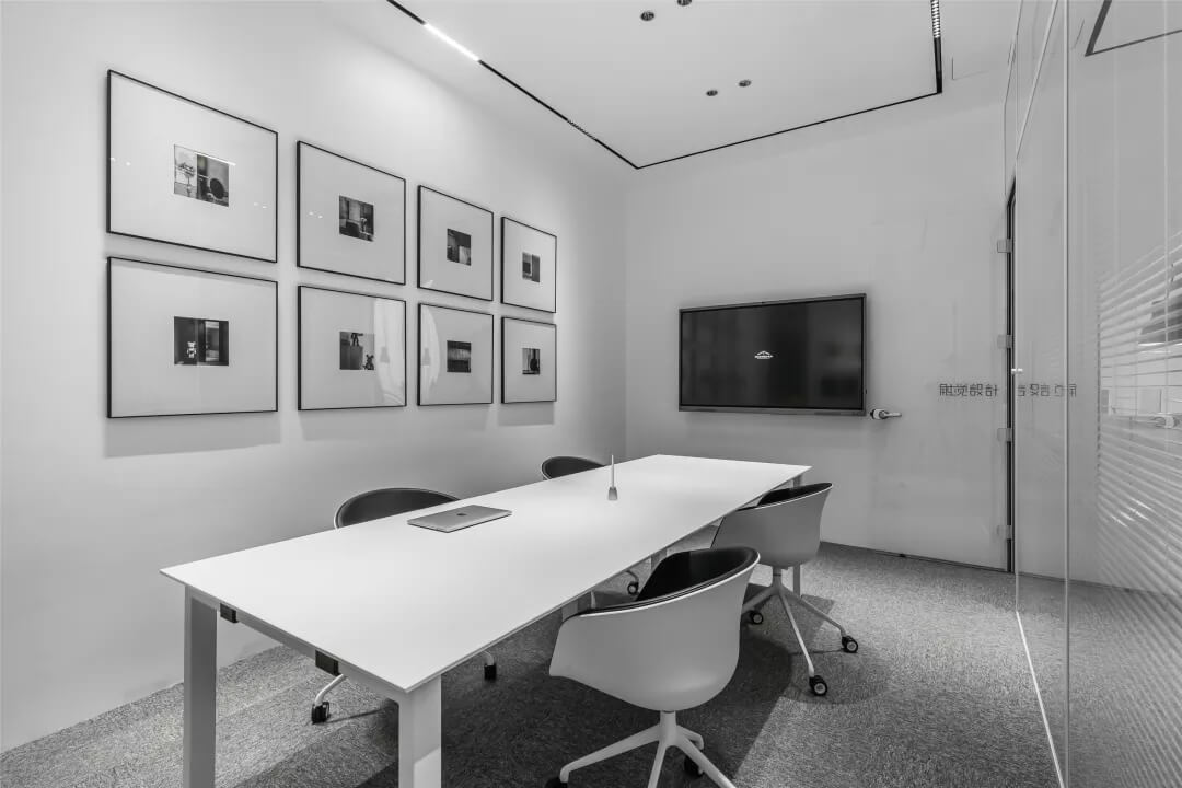 為了同時保證隱私和透明,張馳有道。會議室采用了玻璃+百葉窗的設(shè)計,這樣的交流區(qū)域保持彼此的通透與聯(lián)接,提升了場所的張力。使用貼合設(shè)計的局部掛畫藝術(shù),配以金屬的深邃感官,多媒體影視裝置加強(qiáng)了墻面空間的信息輻射作用。