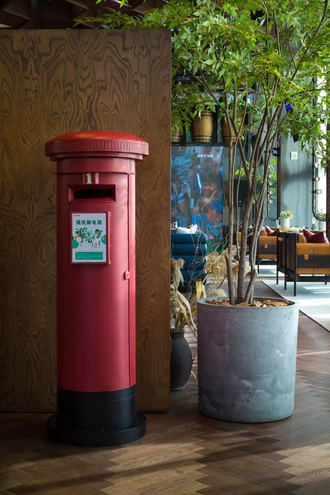未多加修飾的天花,同樣是設(shè)計(jì)中工業(yè)風(fēng)的一個(gè)常規(guī)美學(xué)指向。體育會(huì)所的明確定位,加之依托周邊足球場(chǎng)等體育設(shè)施,使得體驗(yàn)中心更兼有了一個(gè)新的身份定位——體育愛好者聚集觀看比賽的休閑場(chǎng)域。