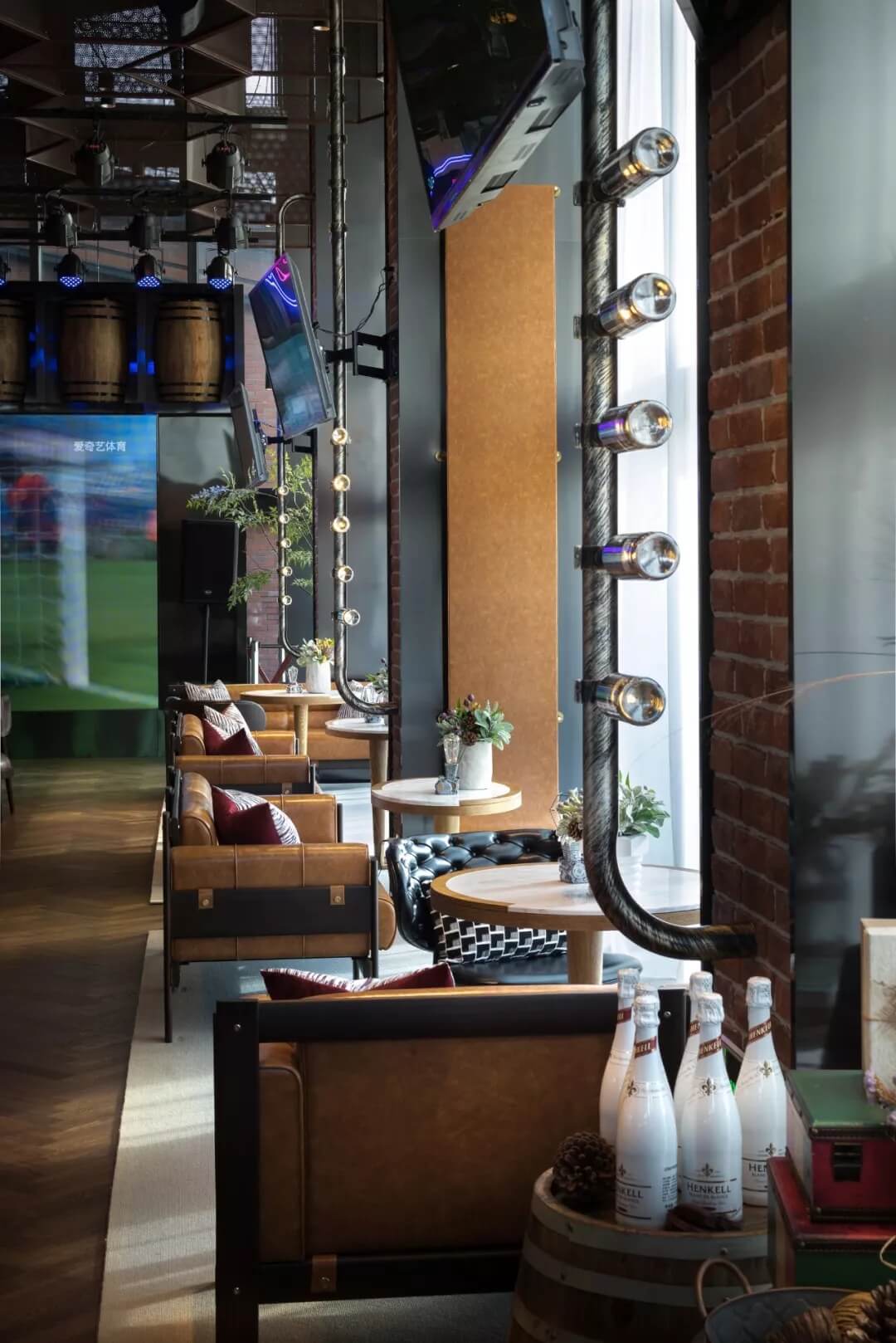 樂尚設(shè)計(jì)擔(dān)綱本案室內(nèi)及軟裝設(shè)計(jì),以國(guó)際化、多元化的設(shè)計(jì)詮釋風(fēng)格定位,在手法上提煉工業(yè)風(fēng)的構(gòu)件元素,“工業(yè)風(fēng)的形式與氣質(zhì)融注其中,自然的生態(tài)美亦盡數(shù)納入,粗獷與細(xì)膩在映襯中的美學(xué)意義更臻完滿,設(shè)計(jì)的意旨得以實(shí)現(xiàn),營(yíng)造出俱樂部看球賽現(xiàn)場(chǎng)的濃郁氛圍感。”