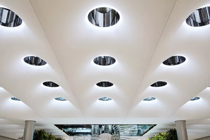 更好玩的是,這個(gè)「天空之境」在白天,能全反射周邊景色,而到了晚上,居然能讓人看清地下商店的模樣。