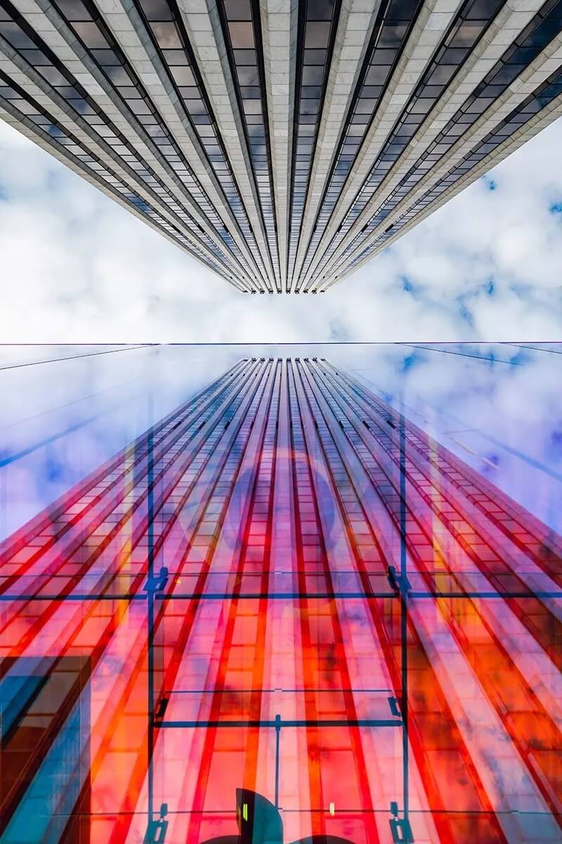 整個(gè)彩色外立面顏色根據(jù)觀看角度不同也呈現(xiàn)不同的色彩。