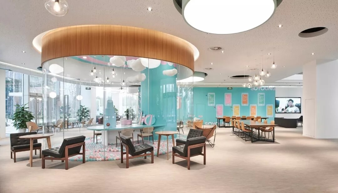 美麗生活館,開拓了新的辦公空間接待區(qū)域使用模式,它融合新氧接待,面試,對外文化展示,咖啡社交等多元化功能,不僅僅是新氧人的前廳,更是對外開放,接納周邊其他企業(yè)及社會人員在此休憩,商務(wù)洽談的公共空間,充分彰顯了新氧開放包容,活力自信的社交屬性。