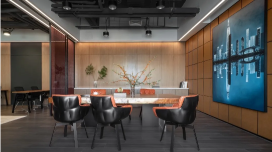 良好的秩序是企業(yè)管理中至關重要的一環(huán),設計師將傳統(tǒng)的分區(qū)規(guī)則弱化,通過漏斗狀開放性的空間布局,賦予空間招財納福之意,以包容的姿態(tài)歡迎更多的圈層精英,展現(xiàn)了企業(yè)的人文關懷與藝術性。