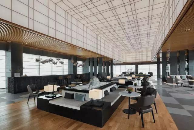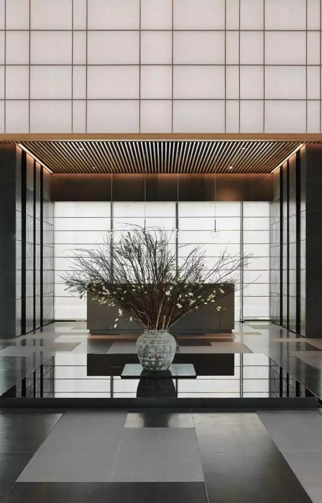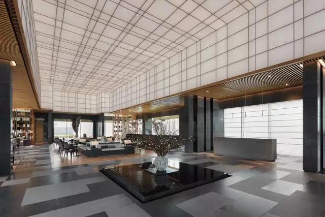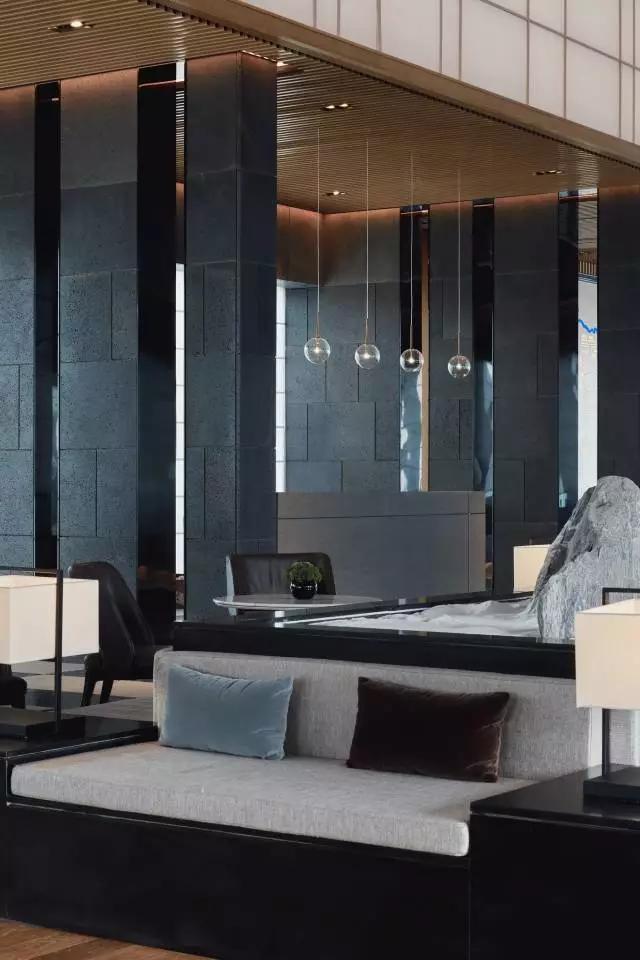 借由東方園林式的假山,打造出“未若柳絮因風(fēng)起”的雪景,美如水墨畫、細(xì)膩至極。這與圍繞式洽談方式布置相結(jié)合,巧妙處理好空間形態(tài)和陳設(shè)之間的關(guān)系。大尺度挑高設(shè)計,加上頂部有序交互的線條,讓空間極具延展性,通透敞亮的照明效果搭配藝術(shù)性燈光點綴,使整體氛圍更顯大氣與品位。該空間通過主體、功能位置、通透的序列式的立面關(guān)系,自然分割空間視線,同時又實現(xiàn)了將光線引入到室內(nèi)的最大化。