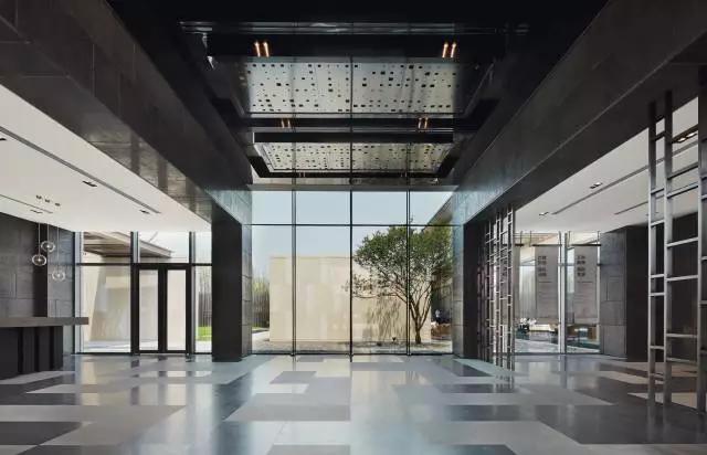 步入大廳,通過“借景”手法,將頗具詩情畫意的東方園林之景鋪呈在眼前,一抹翠綠更是讓整個空間靈動起來,巧妙而又極具視覺沖擊。在陽光照射下,投影又成為景觀的一部分,展示出自然與建筑的互動,活躍且適宜。一大排落地窗串聯(lián)起室內(nèi)外關(guān)系,正是光線的引入,讓建筑、景觀、室內(nèi)形成有序的一體。沿著預(yù)接待吧臺的動線向前穿引,便是整個銷控區(qū)域。