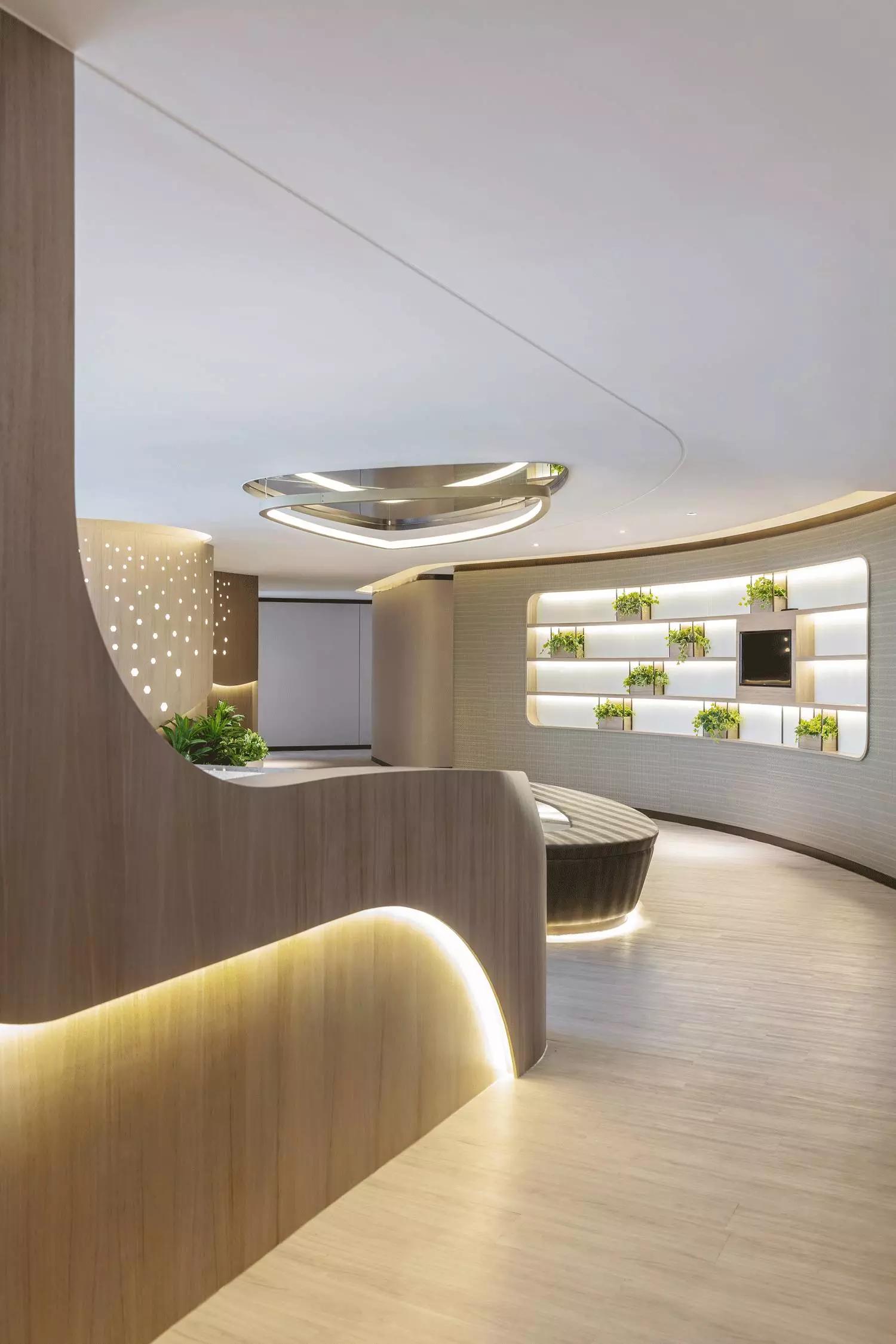 波浪起伏的輪廓舒適宜人,以材質(zhì)和色彩轉(zhuǎn)換空間的調(diào)性,薈萃最恬適的元素塑造循序漸進(jìn)的氛圍體驗(yàn),猶如憩時(shí)份花園回廊,緩和心靈才能得以配合各種療程。