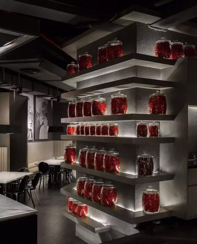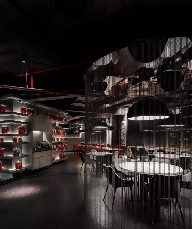 小辣椒湘菜餐廳空間,是以空間的多樣性為主軸。餐廳創(chuàng)始人提出以辣椒裝飾空間,設(shè)計師通過對“小辣椒”這個設(shè)計字符的不斷重復(fù),給空間增加藝術(shù)畫及創(chuàng)意燈飾,成為空間裝飾的細(xì)節(jié)。整個空間的體量不算特別大,但有下沉式空間設(shè)計。用于分割空間的雨滴式珠簾,似動而靜的雨滴隔斷簾營造親密又放松的用餐空間。