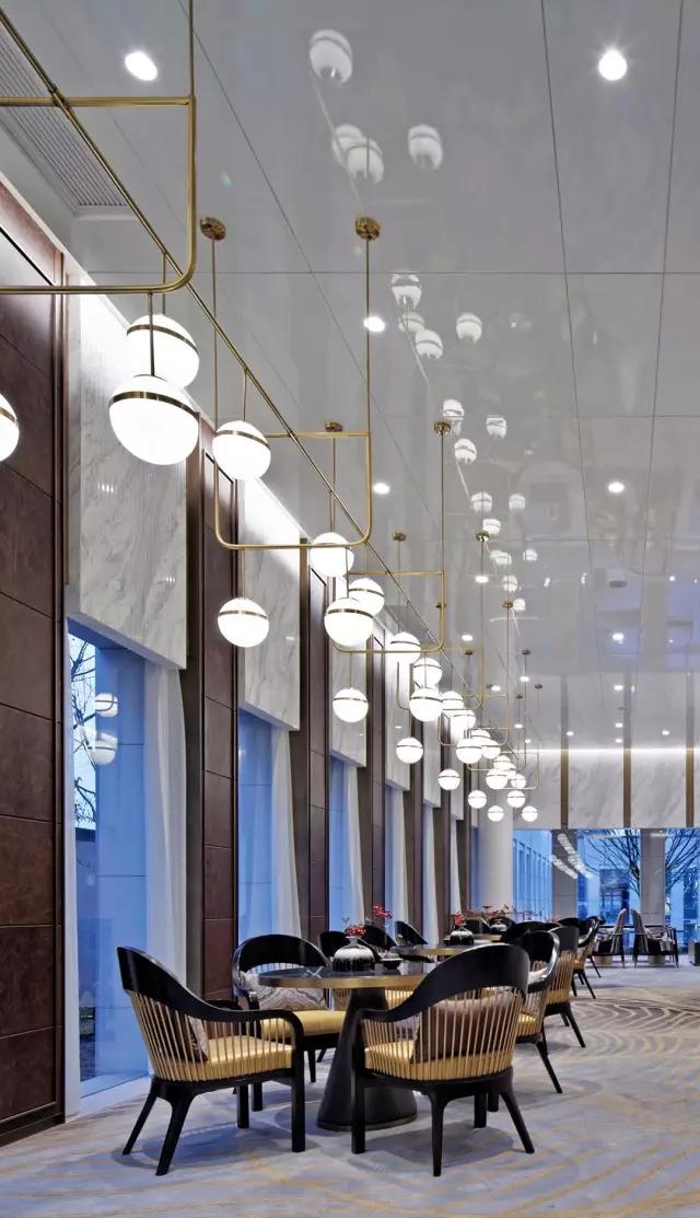 大型吊燈宛如運(yùn)河之水泛起的漣漪,靈動唯美,抓人眼球。地面低調(diào)華麗的灰色大理石與之遙相呼應(yīng),古代先哲素有“天圓地方”之說,意境深遠(yuǎn)的寫意格調(diào)翩然入室,整個空間滲透著典雅尊貴的氣派。