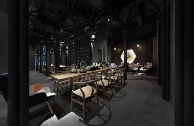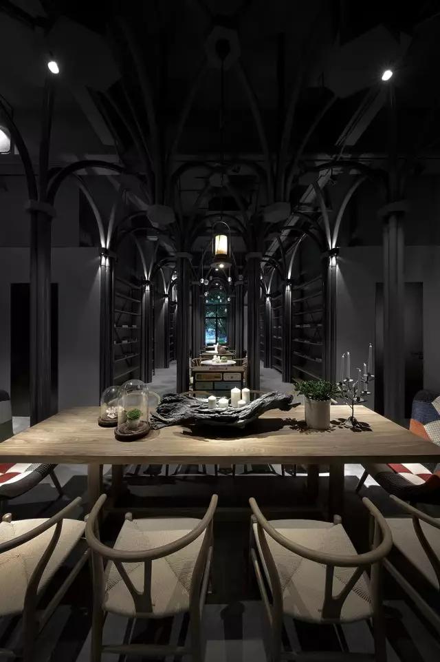 原建筑空間剛剛結(jié)束了破敗的工業(yè)廠房的狀態(tài),業(yè)主接手時(shí)還是一片狼藉。項(xiàng)目的運(yùn)營(yíng)團(tuán)隊(duì)希望打造集餐飲區(qū)、咖啡區(qū)、音樂(lè)活動(dòng)區(qū)及一個(gè)塔羅牌活動(dòng)區(qū)為一體的復(fù)合空間。設(shè)計(jì)團(tuán)隊(duì)從項(xiàng)目的主題概念中所散發(fā)的神秘色彩入手,希望在偏精神層面的建筑中汲取靈感,翻閱并走訪了大量的哥特式建筑,從挺拔向上的建筑空間結(jié)構(gòu)中體會(huì)與神對(duì)話的力量感,然后將其移植到這個(gè)項(xiàng)目中,以當(dāng)代的構(gòu)成形式,向傳統(tǒng)建筑致敬。