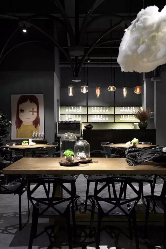考慮到經(jīng)濟(jì)性、便捷的施工工藝與周期,清水混泥土成為了主要的材質(zhì)。由哥特式建筑引發(fā)的圓管結(jié)構(gòu)設(shè)計(jì),在空間中重組、穿插、演繹了一場(chǎng)哥特式感覺(jué)的舞臺(tái)劇,其高潮莫過(guò)于咖啡區(qū)的一朵白色漂浮的云。設(shè)計(jì)最大限度的融入了環(huán)保概念,不僅所有的材料都是可以回收利用的,而且定制安裝的方法既減少了現(xiàn)場(chǎng)的污染,也節(jié)省了施工周期。設(shè)計(jì)團(tuán)隊(duì)選擇了很多具有趣味性的當(dāng)代藝術(shù)作品來(lái)為空間注入時(shí)尚而放松的氣質(zhì),輔以層次豐富的燈光效果,將空間打造成了一個(gè)優(yōu)雅而又風(fēng)趣的雅皮士的感覺(jué)。